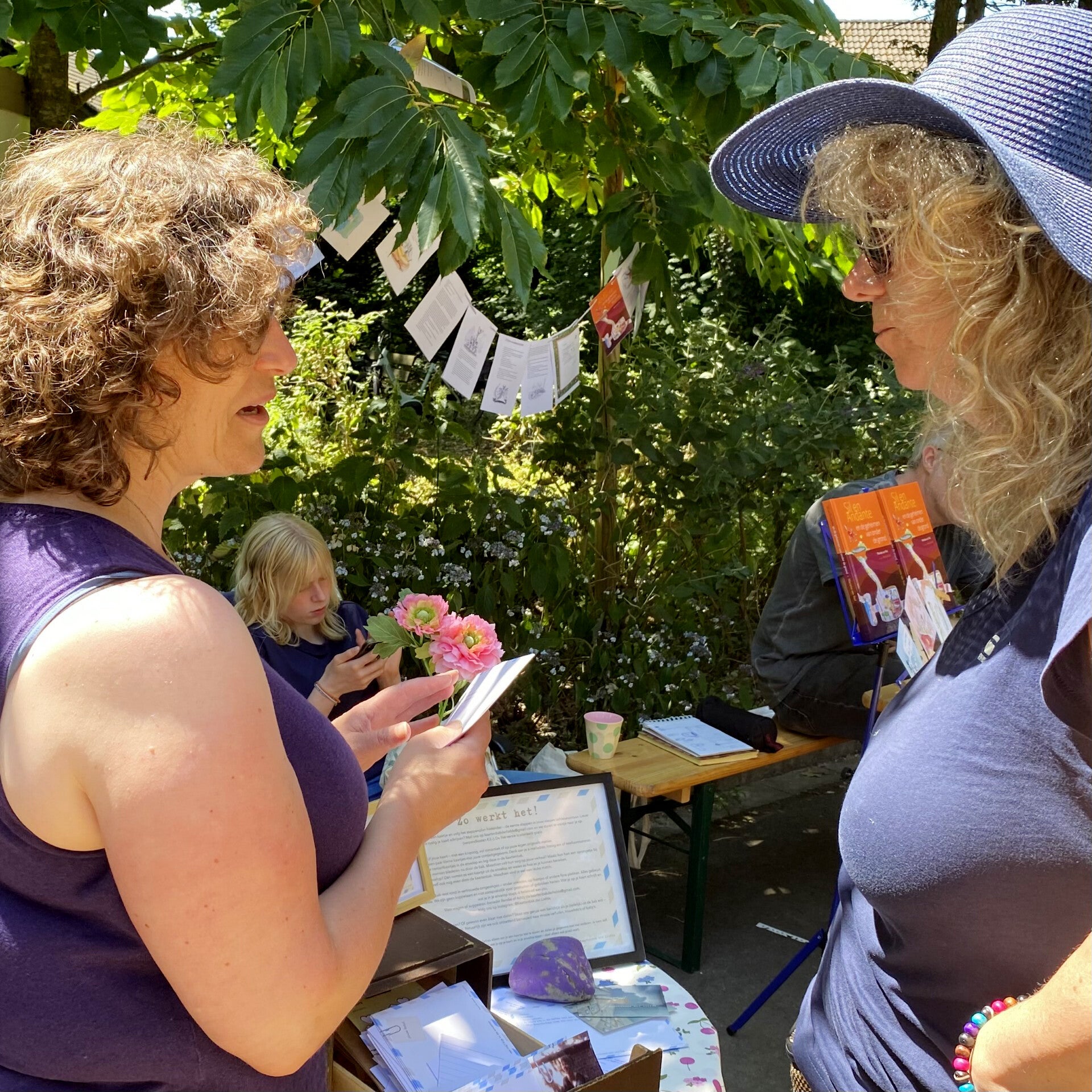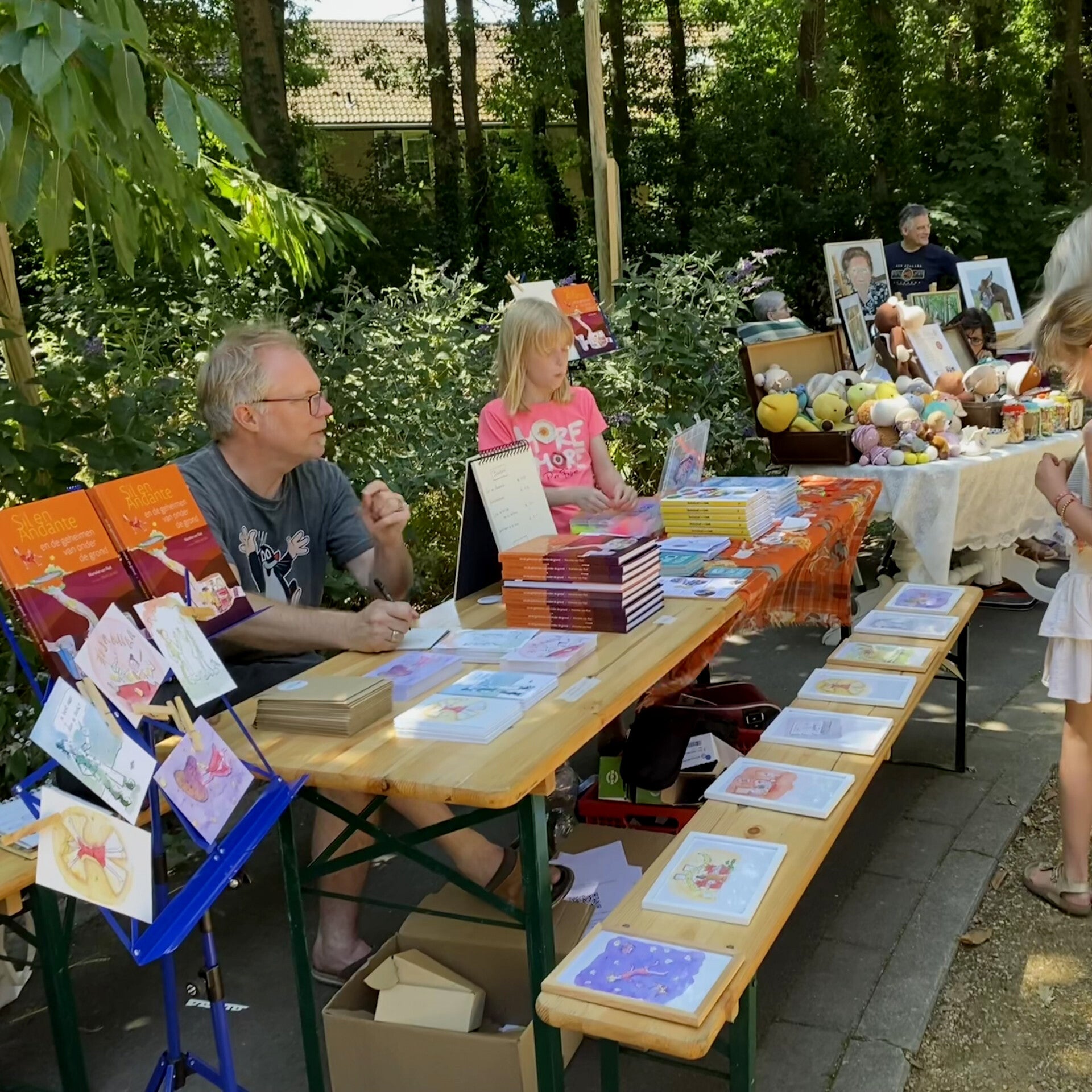 Afgelopen zondag, 29 juni, was een dag met mooie ontmoetingen op het plein. We waren samen met een groep lieve mensen die hun prachtige zelfgemaakte werk toonden aan de vele bezoekers. Dat leverde fijne gesprekken op, met aandacht en interesse. Nieuwe en oude contacten werden er gelegd en verstevigd. En er wisselden allerlei keramiek, knuffels, boeken, kunstwerken, ansichtkaarten en nog veel meer van eigenaar. Die hebben hun weg gevonden naar weer andere lieve mensen. Ook enkele workshops brachten mensen samen en gaven hen een nieuwe ervaring. Dank aan iedereen die er was. Samen hebben we deze dag tot een prachtige, verbindende dag gemaakt!
