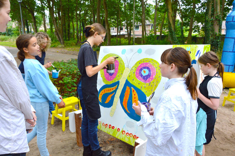 Tijdens het slotfeest beschilderden de kinderen en hun ouders de minibieb