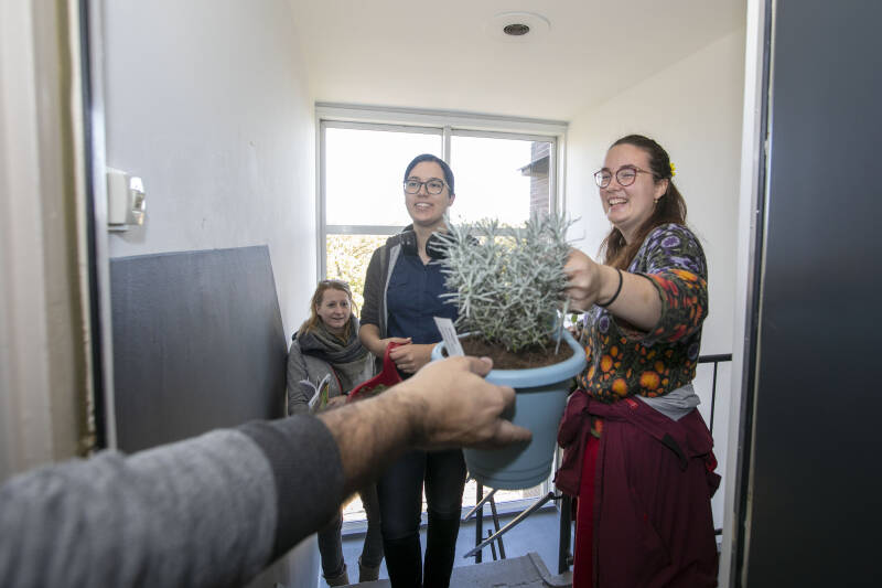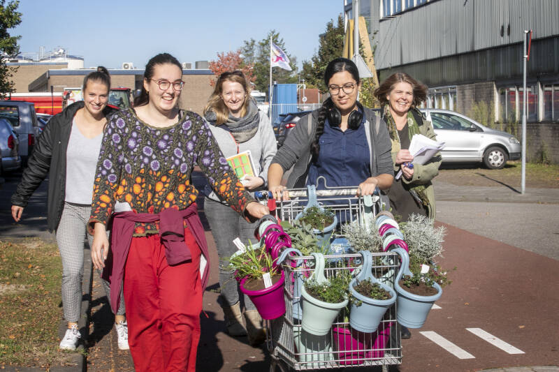 Op donderdag 28 oktober was het dan zover: we gingen samen met Yussra op pad! We maakten jong en oud blij met de fleurige balkonbakjes met eetbare kruiden. En ontdekten dat er veel interesse was voor een buurt(moes)tuin in de wijk. Dus we gaan zeker nog kijken naar de mogelijkheden voor een groen vervolg van dit mooie initiatief.